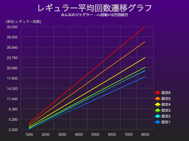 そのレギュラー確率は、回転数・設定ごとに