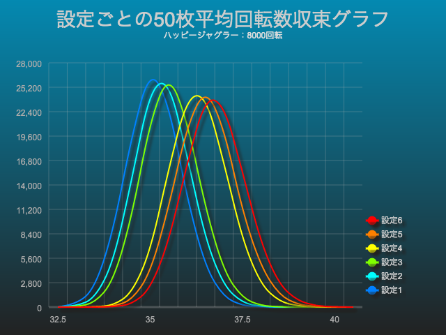 設定ごとの収束グラフを見ると、ハッピージャグラーでは、